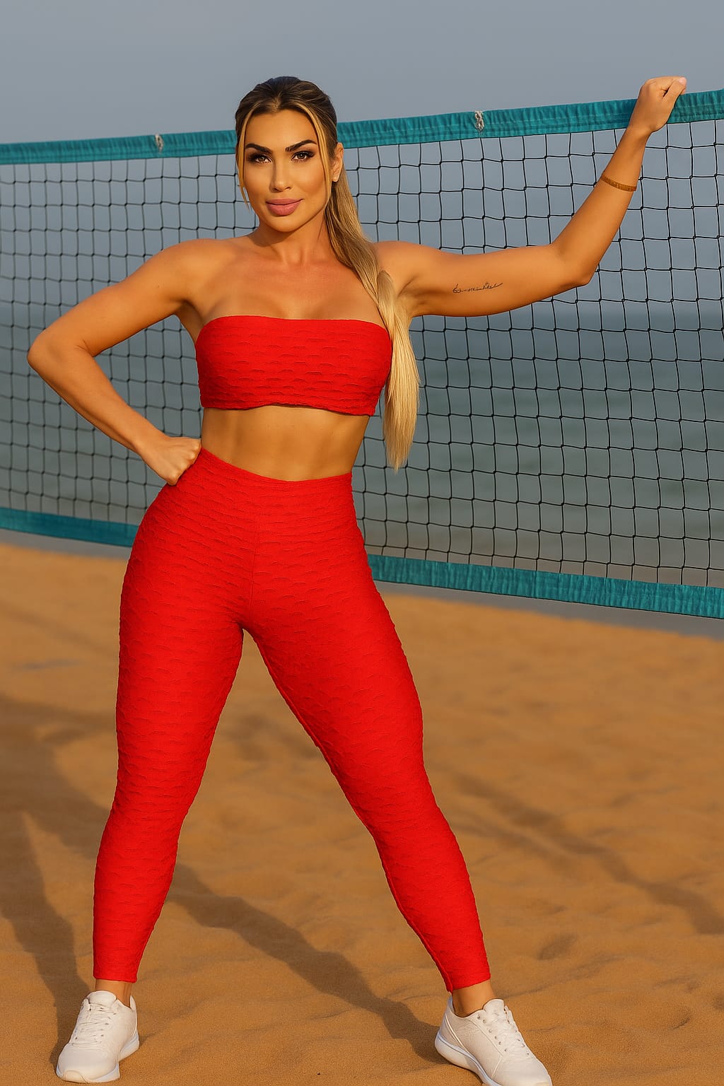 CJ51002 - Conj. Calça e Top Faixa Poliamida Brocado - Vermelho