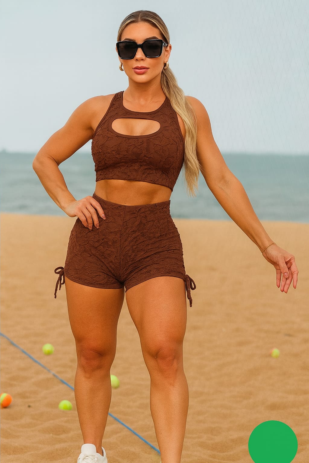 CJSH-53001 - Shorts e Top Brocado Marrom